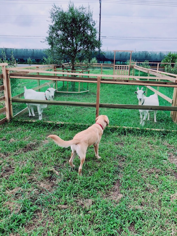 小型犬用のドッグランに草刈り担当のチカちゃんとモナカちゃんが一時滞在しています。