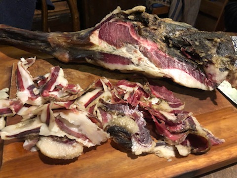 まずはワインと共に八須さん自家製、猪の生ハムを!
